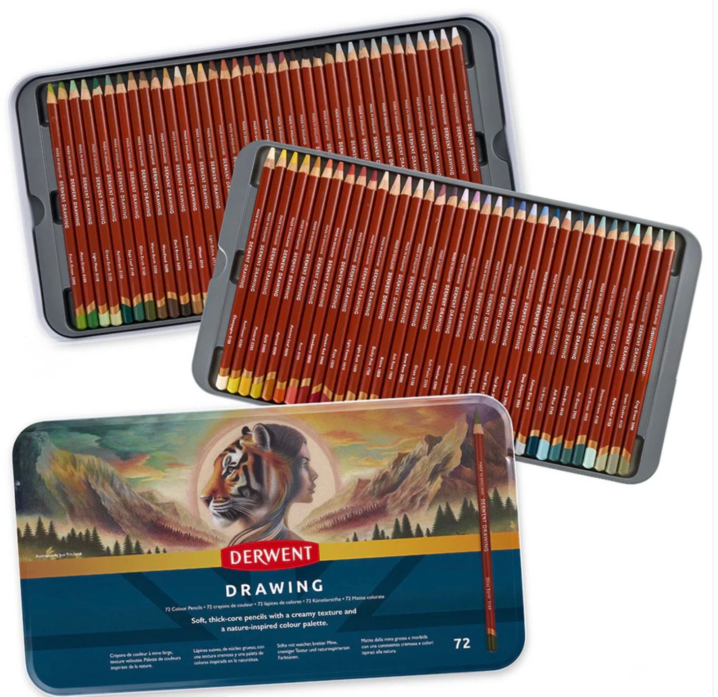 With a soft, creamy texture and rich pigments, Derwent Drawing Pencils are ideal for a wide array of drawing and coloring techniques, including layering, blending, and creating detailed textures. The new set of 72 boasts an earthy, natural color range, ideal for capturing the beauty of wildlife, nature, and portraiture.